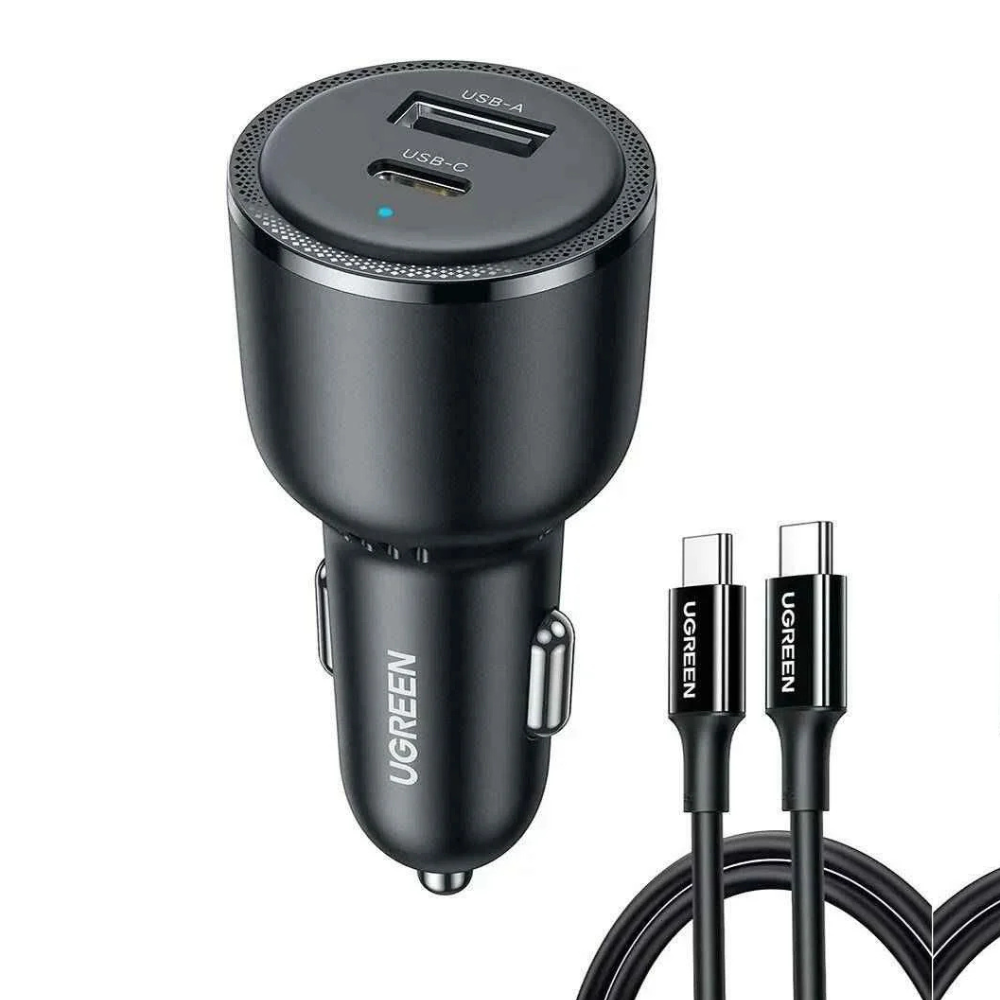 24W Dual USB Fast Car Charger with Type-C – Black (PD Fast Charging)