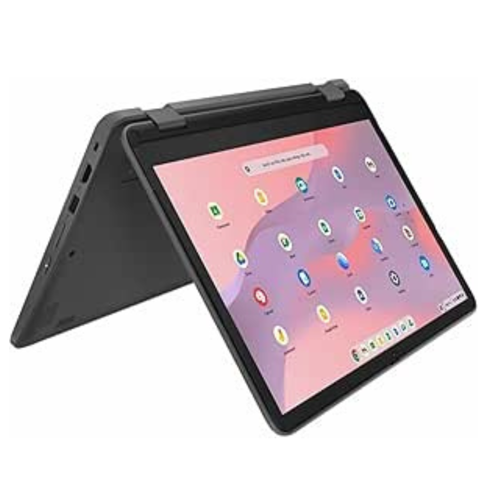 The Lenovo Chromebook 500e Touch X360 is a versatile and durable Chromebook built for learning, productivity, and on-the-go use. Its 11.6-inch HD (1366×768) multitouch IPS display supports touch input and rotates a full 360°, letting you use it in laptop, tablet, tent, or stand modes — ideal for typing, drawing, presentations, and browsing